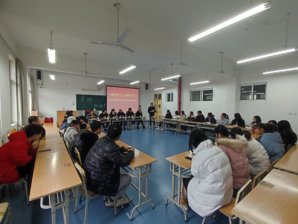 农学系主任张丽琼、食品系朱新鹏教授等针对同学们的备考情况和心理状况,与员工进行了深入交流,并向考生提出建设性的建议:一是合理安排作息时间,保持良好心态,注意饮食营养,保持身体健康;二是希望同学们能全力以赴,以最好的状态迎接考试。
