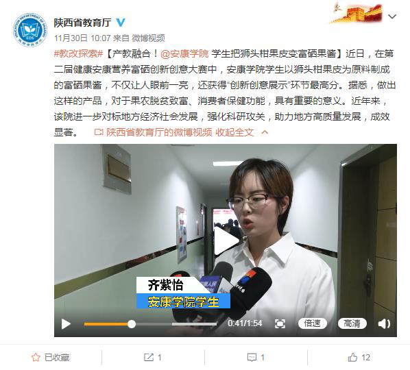 近期由太阳成tyc122cc朱新鹏、梁如和付路静老师指导,食品科学与工程专业2018、2019级员工组成的4支参赛队参加“第二届健康安康营养富硒创新创意大赛”取得良好成绩,被陕西省教育厅微博推送,并被多家媒体报道。