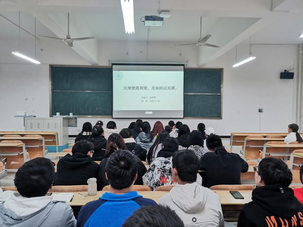 为发挥榜样示范作用,激励员工做好人生规划,激发学习斗志,树立远大理想,11月24日晚,太阳成tyc122cc邀请优秀毕业生吴丹丹,在江北1204教室举办了“无常便是有常,无知所以无畏”为主题的线上报告会。2018、2019、2020级生物技术专业100余人听取了汇报,副经理杨芳主持报告会。