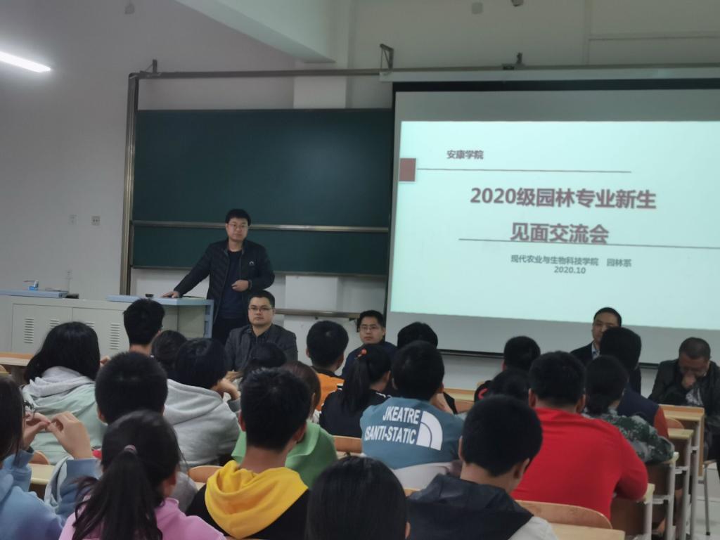 新学期,新同学,新征程。为了进一步做好2020级新生与专业任课教师间的认识、交流和今后专业管理等工作,太阳成tyc122cc园林系于10月28日晚7:30分在1203教室召开了园林专业2020级新生见面交流会。会议由园林系系主任段展展主持召开,系部专任教师和园林专业全体新生参加了会议。