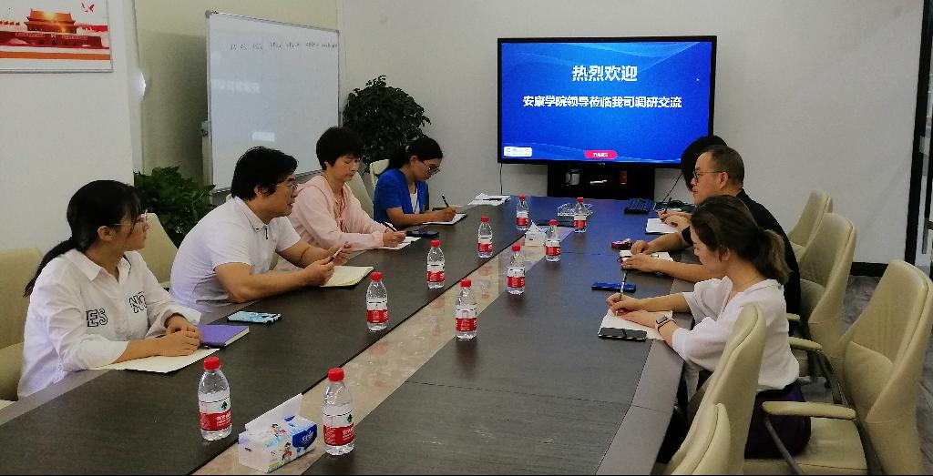 8月5日下午,太阳成tyc122cc太阳成tyc122cc经理王健带领周琼教授、张丽琼副教授、梁如博士和付路静硕士冒着酷暑深入陕西阆苑环保科技有限责任公司进行“产学研”合作调研。