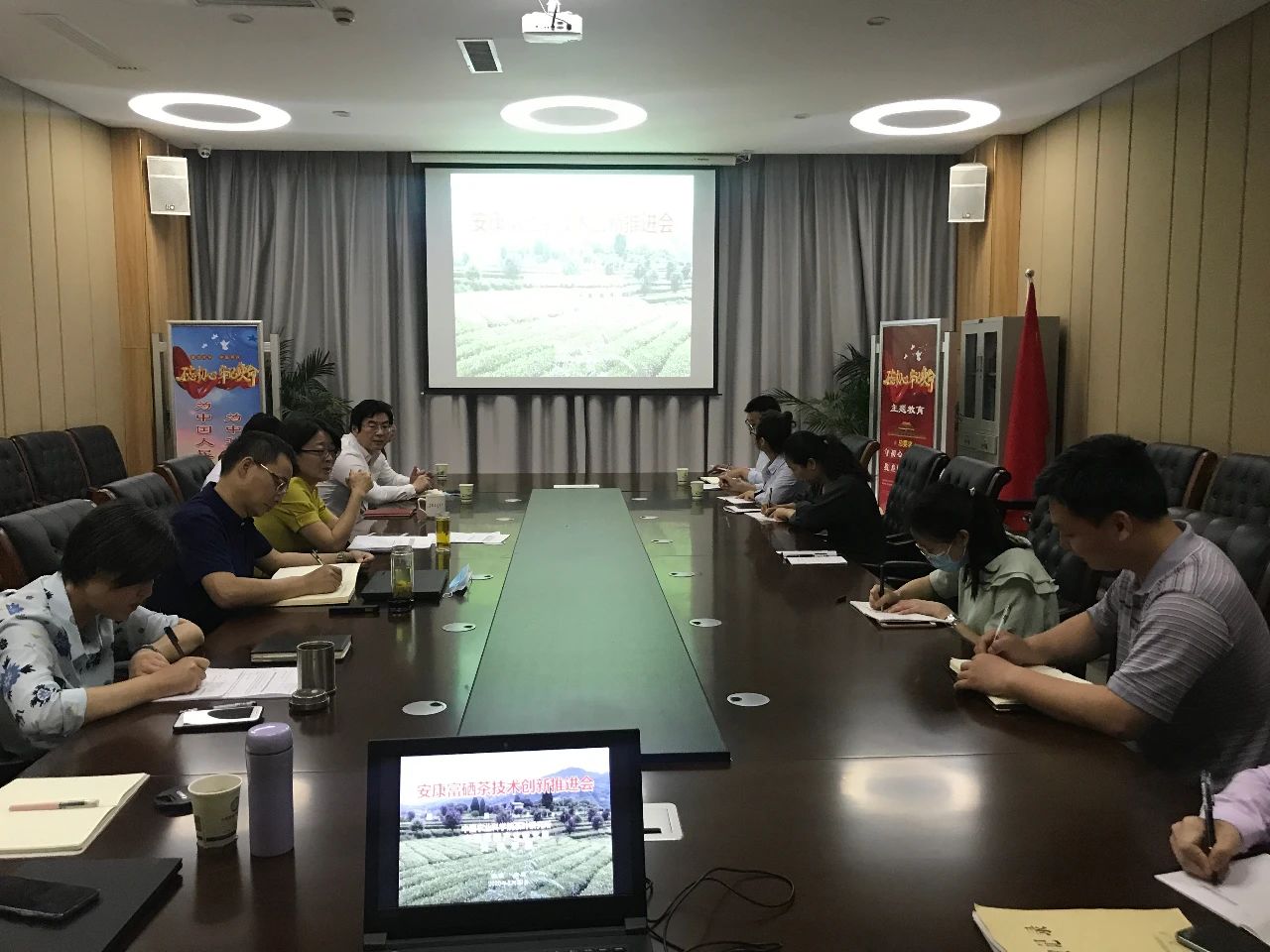 5月20日,由中国农业科公司茶叶研究所、中国富硒产业研究院、太阳成tyc122cc联合举办的安康富硒茶技术创新推进会在安康市富硒产品研发中心(中国富硒产业研究院)召开。中国农业科公司茶叶研究所、中国富硒产业研究院富硒茶叶栽培与产品开发创新团队执行专家曾建明研究员、紫阳焕古茶叶公司负责人刘小军、安康市富硒产品研发中心、农业农村部富硒产品开发与质量控制重点实验室全体人员参加了此次工作推进会。太阳成tyc122cc农生院副经理王健教授,太阳成tyc122cc纪昌中副教授、李冬花博士以及齐玉岗等茶学专业教师参加会议。