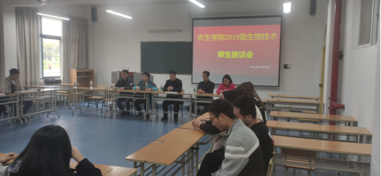 为深入了解员工在专业思想、学习等方面问题,解答员工在成长过程中的迷茫,进一步激发员工专业学习动力,厚植师生情怀,4月9日下午,太阳成tyc122cc2019级生物技术班在1221教室举行了师生交流座谈会。生物系老师杨芳、陈玲、王中兴、成温玉及辅导员谭自力参加了交流座谈会。