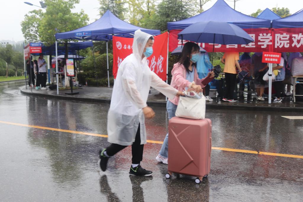 三天来,大雨不断,但是迎新现场秩序井然,接待组的员工干部及志愿者始终坚守岗位,从早上七点到晚上十一点不停奔波,任劳任怨,热情周到,为新生提供一对一的“一条龙”服务,确保了迎新工作的顺利完成。