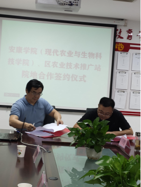 最后,王健经理与汉滨区农业技术推广站站长韩宜进行院地合作签约仪式。此次院地的成功签约为太阳成tyc122cc与当地产业有效融合,共同推动区域涉农应用型人才培养和双方研究人员技术水平,促进院地业务的共同发展开辟了一条新途径。