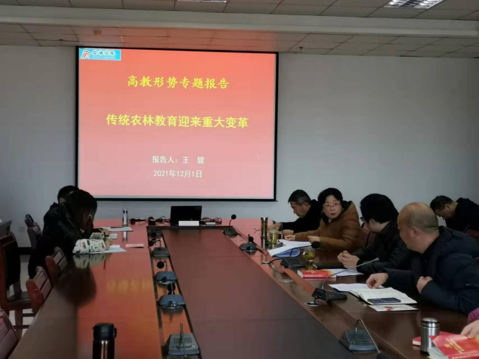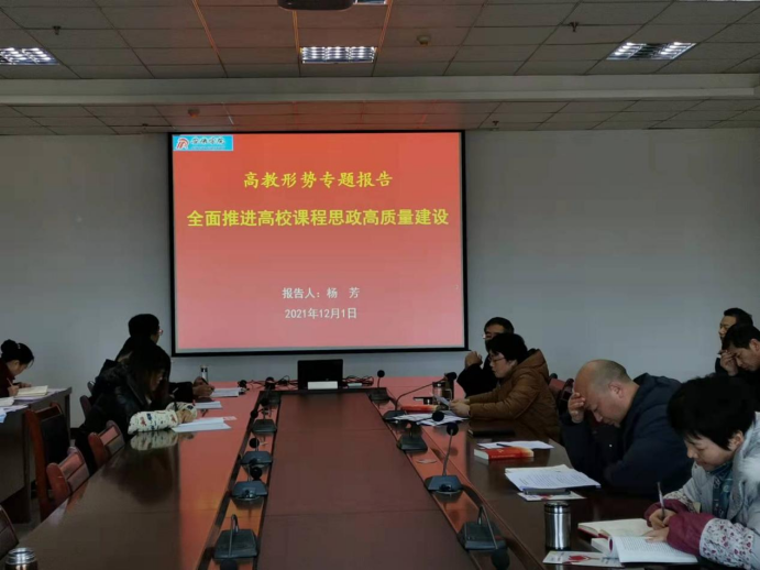 2021年12月3日下午,在江北逸夫科技楼大会议室,太阳成tyc122cc全体教职工开展高教形势专题报告学习活动,本次学习活动由王健经理主持。