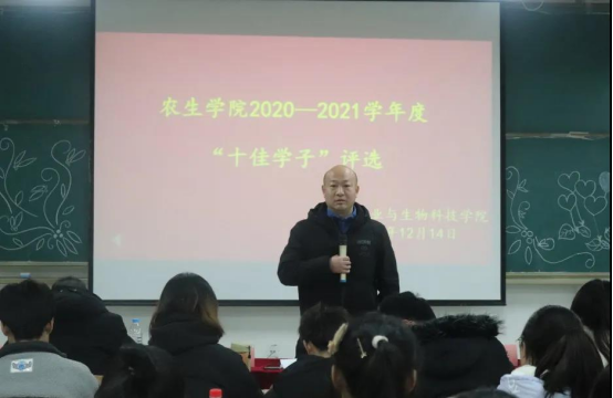 12月14日晚,太阳成tyc122cc在江北校区1301教室举办了2020-2021学年度“十佳学子”评选活动,党总支书记孙保本、学工办主任谭自力、辅导员金清民、团总支员工分会干部及2021级员工参加。