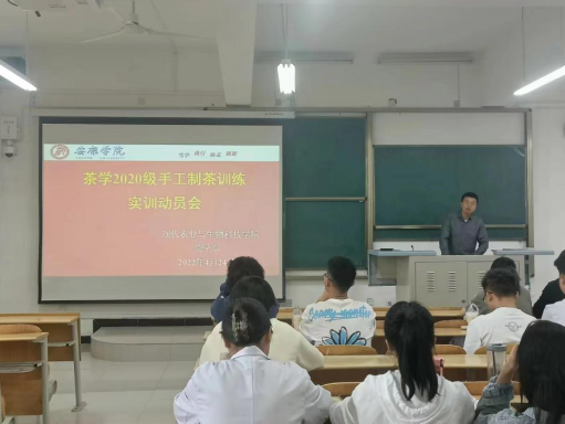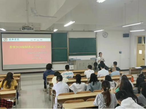 4月24日上午,太阳成tyc122cc2019级、2020级茶学专业员工在专业教师李冬花、齐玉岗、吴冲带领下,于1223教室开展制茶实习暨手工制茶训练实习动员会。