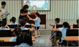 魏子怡同学通过生动的语言给大家介绍了金鱼、锦鲤的种类,形态各异的观赏鱼图片吸引了小朋友们的目光。