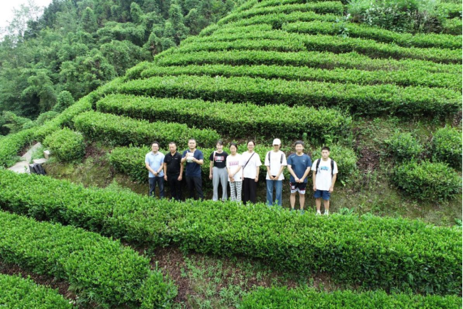 第一站来到谢坪村“新农高现代农业园区”。师生首先进入茶园实地调查了园区“陕茶一号”百亩茶园的生产情况,通过与园区负责人的交谈,了解了茶园生产管理的做法及存在问题。