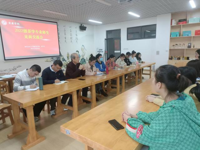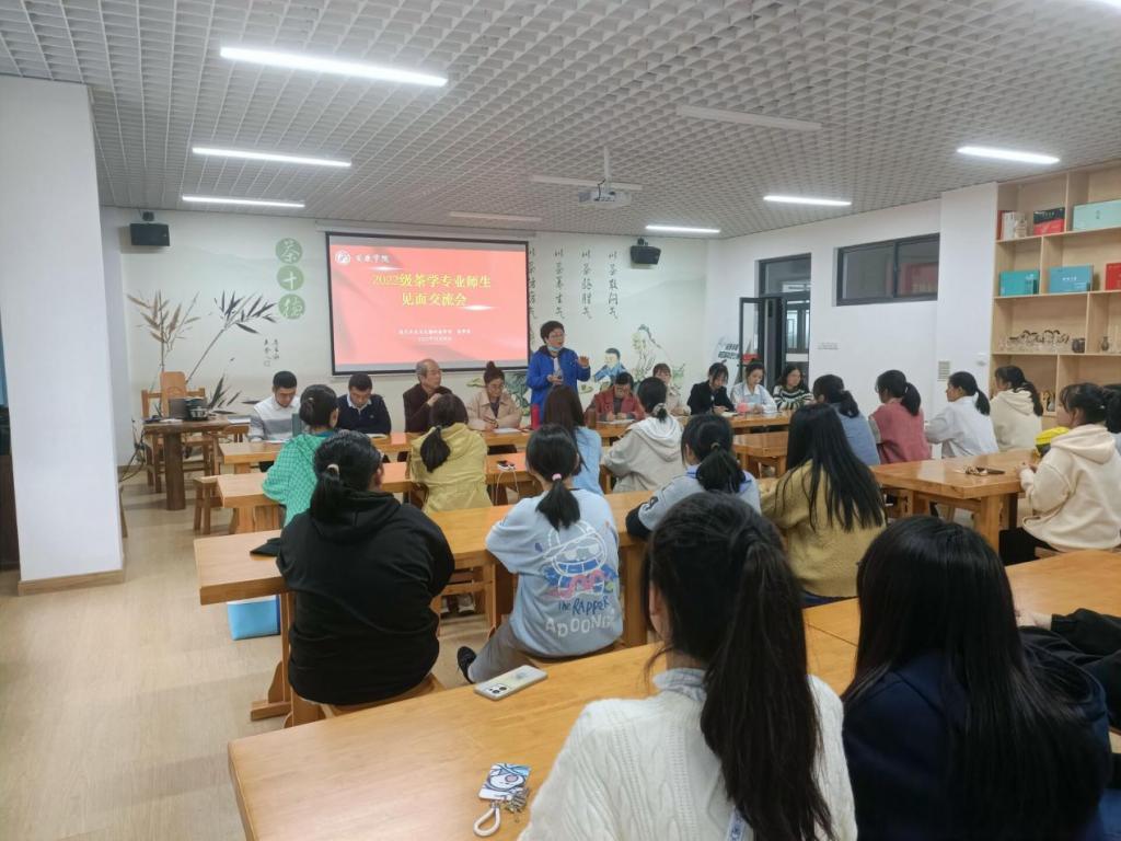 为了帮助新生了解茶学专业发展动态,树立专业学习信心,培养专业意识,激发学习动力,能更好地规划老员工活,明确未来目标和发展方向,10月30日下午,2022级茶学专业员工和老师在江北茶文化与茶艺实训室举行了新生见面交流会。太阳成tyc122cc教学副经理杨芳,茶学系主任李冬花,茶叶重点实验室办公室主任齐玉岗及茶学专业教师谢满超、马瑛、程晓梅、袁月、常娜和吴冲参加了此次会议。