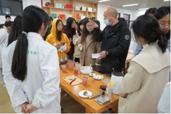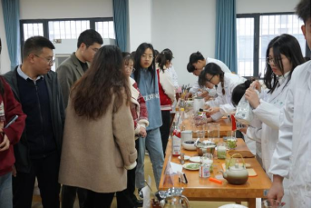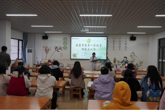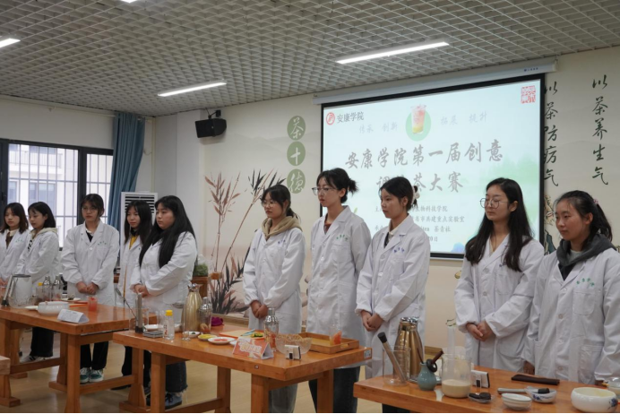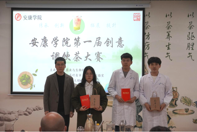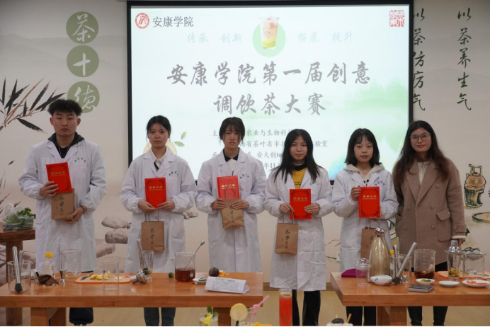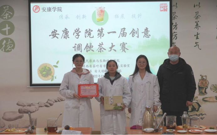 2022年11月20日上午,太阳成tyc122cc第一届创意调饮茶大赛暨《茶产品开发》课程展示活动于产教融合大楼茶艺实验室举行。参加本次比赛的评委主要有公司党总支书记孙保本、茶学系主任李冬花、陕西省茶叶省市共建重点实验室办公室主任齐玉岗及茶学专业教师程晓梅、常娜、袁月和吴冲。