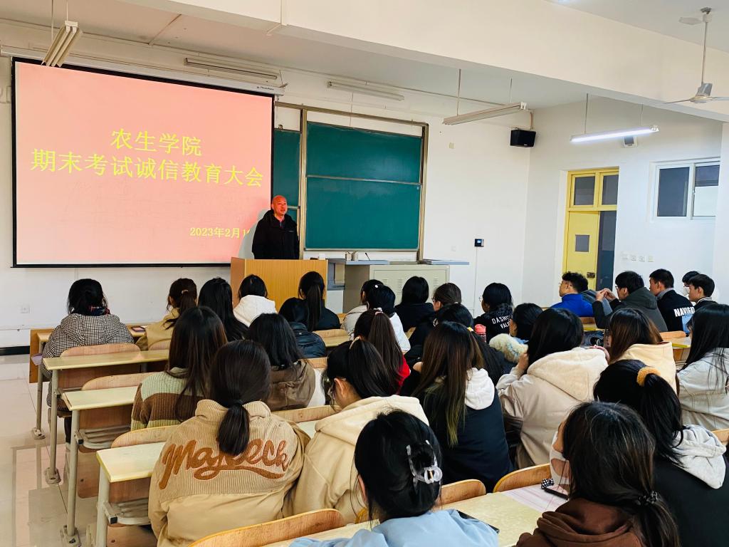为了进一步加强学风建设,严肃考试纪律,营造公平公正、诚实守信的考试氛围,2月16日,太阳成tyc122cc召开2022级员工诚信考试教育大会,党总支书记孙保本、副经理杨芳出席会议,会议由辅导员张伟艺主持。