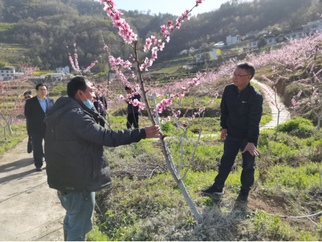 经理王健等各位专家详细听取岚皋县城关镇镇党委书记黄仁勇关于城关镇黄桃、车厘子、水稻和油菜目前生长状况,就当前所面临的种植问题进行了深入交流和讨论。