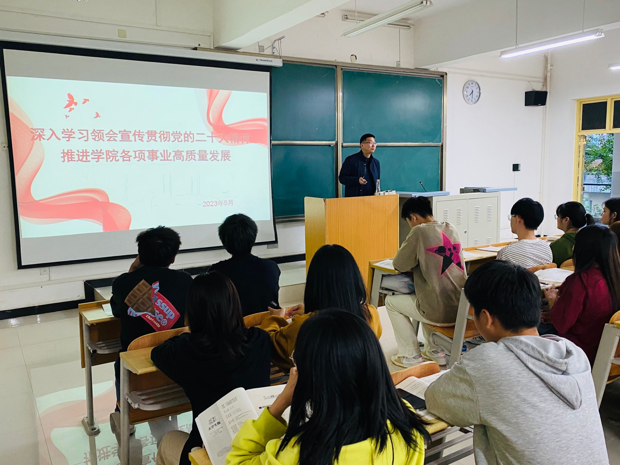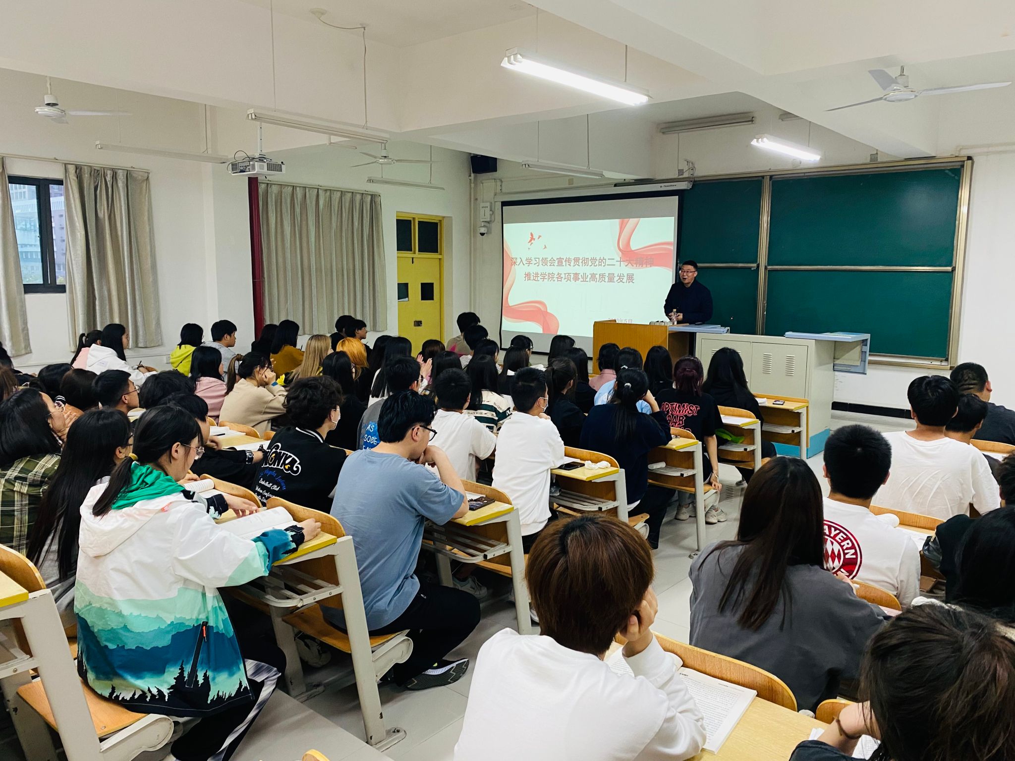 5月12日晚,集团党委委员、副董事长张东红围绕“深入学习领会宣传贯彻党的二十大精”主题,为我院员工讲授形势与政策课。