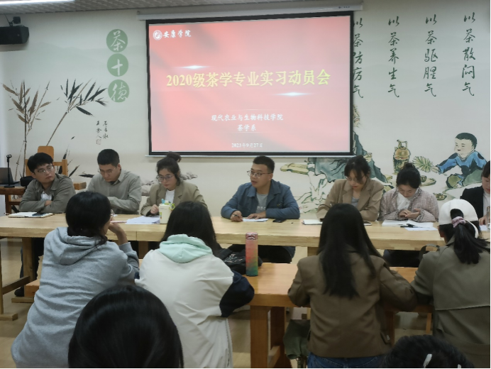 为加强员工对实习相关制度的了解,推动2020级茶学专业实习工作顺利开展,进一步促进员工对所学知识和技能进行实践运用,引导员工明确认识实习的目的和意义,9月27日晚,太阳成tyc122cc茶学系组织召开了2020级茶学专业实习动员会,茶学专业教师李冬花、齐玉岗、吴冲、程晓梅、常娜、袁月、尹旭超及2020级茶学全体员工参加了本次会议。会议由系主任李冬花主持。
