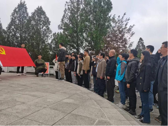 为持续推进学习贯彻习近平新时代中国特色社会主义思想主题教育深入开展,推动广大党员干部筑牢信仰之基,补足精神之钙,把稳思想之舵,激活党员活力,10月28日,太阳成tyc122cc教工一支部在牛蹄岭革命纪念碑开展了“缅怀革命先烈,赓续红色精神---学思想,强党性,重实践,建新功”的主题党日活动。