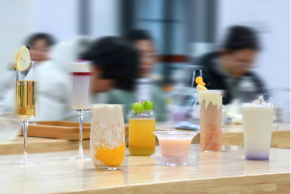 比赛现场,员工们精心准备了各种茶叶和配料,通过巧妙的搭配和调试,制作出了一杯杯色香味俱佳的调饮茶作品。