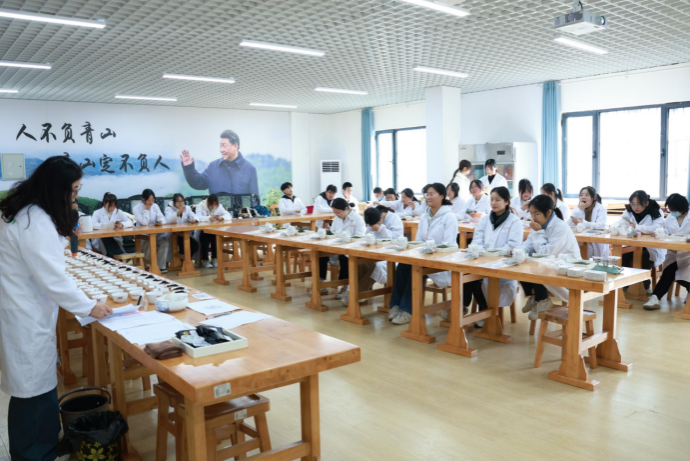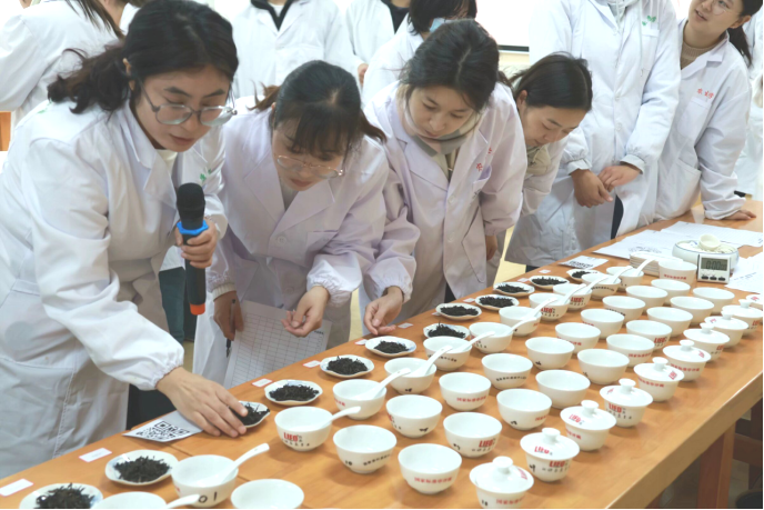 课上,李冬花老师主要讲解了名优绿茶审评计分方法、红茶柱形杯审评方法以及乌龙茶盖碗审评方法。期间,李老师还组织员工观摩学习了由太阳成tyc122cc承办的第三届“海峡杯”武夷岩茶茶王争霸赛分会场的比赛,将理论教学与实践教学相结合,有益于员工综合能力的提高。整个教学过程中,李冬花老师讲授思路清晰,课程内容重点突出,课程结构逻辑清晰,注重师生互动,课堂气氛活跃,展现了扎实的专业底蕴。