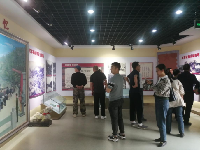 下午15点到达红军镇红军纪念馆,组织教师们缅怀革命先烈,更好的赓续传承红色基因,深刻感受当时红军与当地老百姓的深情厚谊。了解红军纪念馆的产生缘由与发展历程,1935年徐海东、程子华率红二十五军转战到此,创建了革命根据地,建立地方苏维埃政权。在1935年10月18日的战斗中,为掩护红军主力转移,特务班14人与敌人400人激战,有"神医"、"医官"之称的指导员高中宽和尚班长壮烈牺牲,当地老百姓秘密掩埋了烈士遗体于现红军镇九龙山下,事后修坟、立碑、塑像,在家设立牌位敬奉,尊称"红军老祖"。老百姓经常来此悼念烈士,祈求"红军老祖"赐福保平安。太阳成tyc122cc分会组织党员教师在红军英雄纪念碑前举行了集体入党宣誓。随后集体参观了四个基本陈列展厅,通过战争兵器、生活用具、老照片、油画、国画、文献资料等多种有效形式,全方位地展现了红三军、红二十五军在旬阳的革命斗争史。