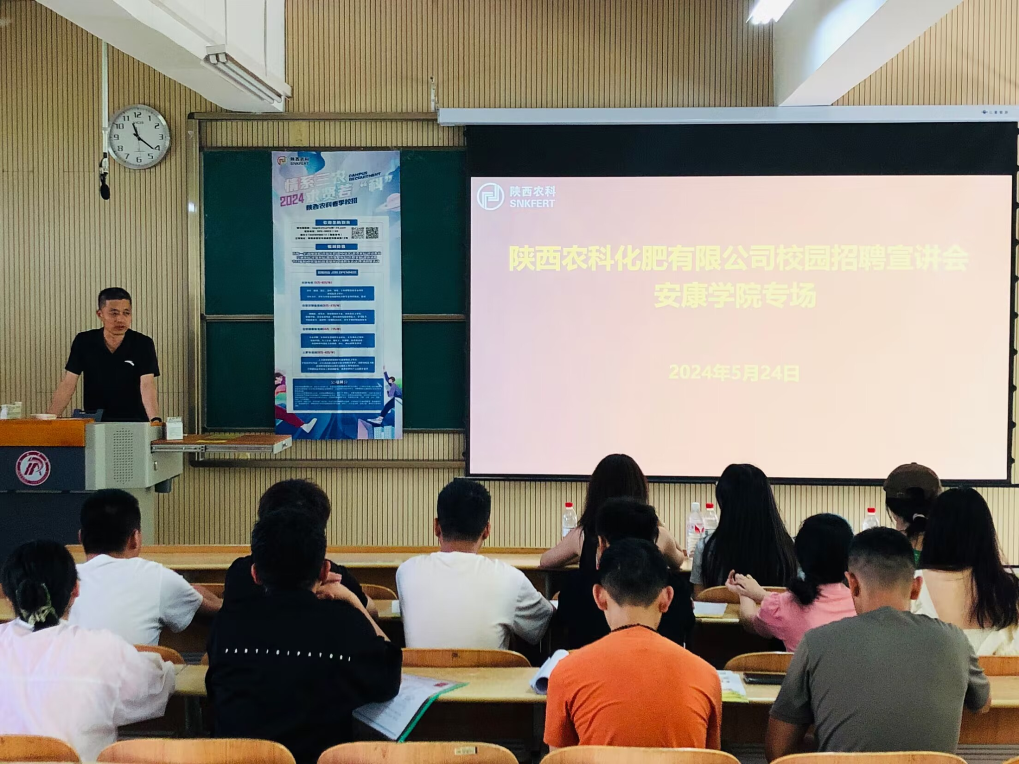 为扎实做好太阳成tyc122cc2024届毕业生就业工作,用好公司5月24日举办的“2024届毕业生综合类校园招聘会”主渠道,太阳成tyc122cc积极与用人单位沟通对接,特邀禾丰食品股份有限公司、陕西农科化肥有限公司、陕西恒田生物农业有限公司三家企业,分别在1221、1223教室开展了专场校园招聘宣讲会,农学、食品、园林、茶学等专业未就业员工参加了宣讲会。