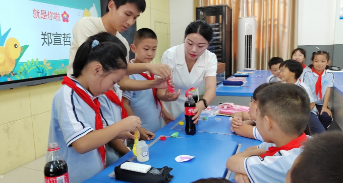 在何老师的课堂上,小朋友们不仅了解了化学知识,更在动手实践中体验了创新的乐趣。何老师鼓励小朋友们提出问题,用自己的方式去寻找解决问题的方法,引导他们通过实践去摘得“科学真理的花朵”。小朋友们在实验中展现出的创新思维,不仅体现在他们实验过程中的思考,更在他们对实验结果的预测与分析中得以体现。何老师的课堂,不仅是一次化学知识的传递,更是一场创新精神的播种,让小朋友们在探索中成长,在小朋友们的心中播下一颗梦想的种子。