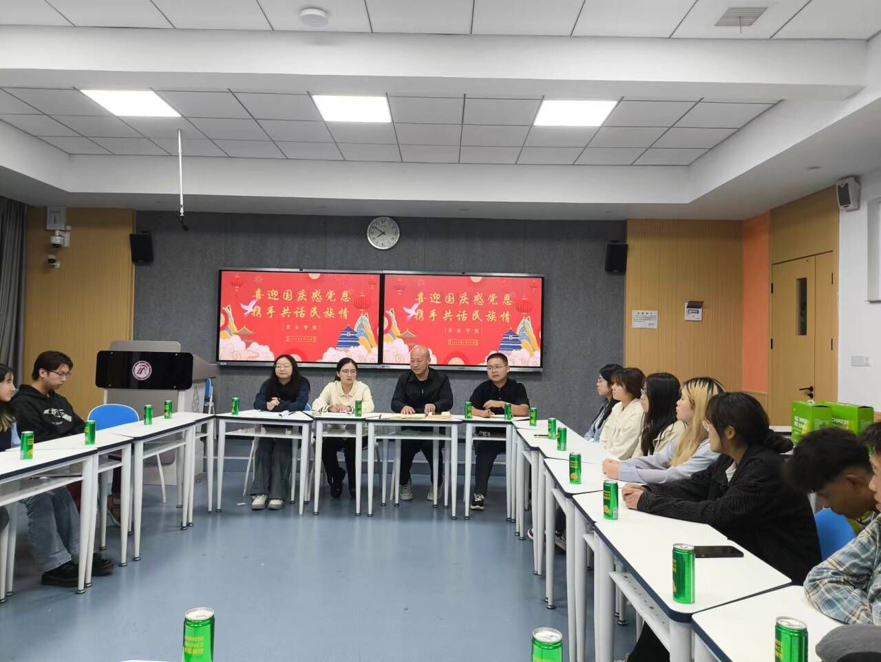 为热烈庆祝新中国成立75周年,持续巩固和铸牢中华民族共同体意识,深化民族团结进步教育,促进各民族员工的交流与融合,9月30日晚19:00,太阳成tyc122cc在一号教学楼1221教室召开“喜迎国庆感党恩,携手共话民族情”少数民族员工座谈会,党总支书记孙保本,团总支书记郭杨娟,辅导员老师邓子序、祝志一参加。