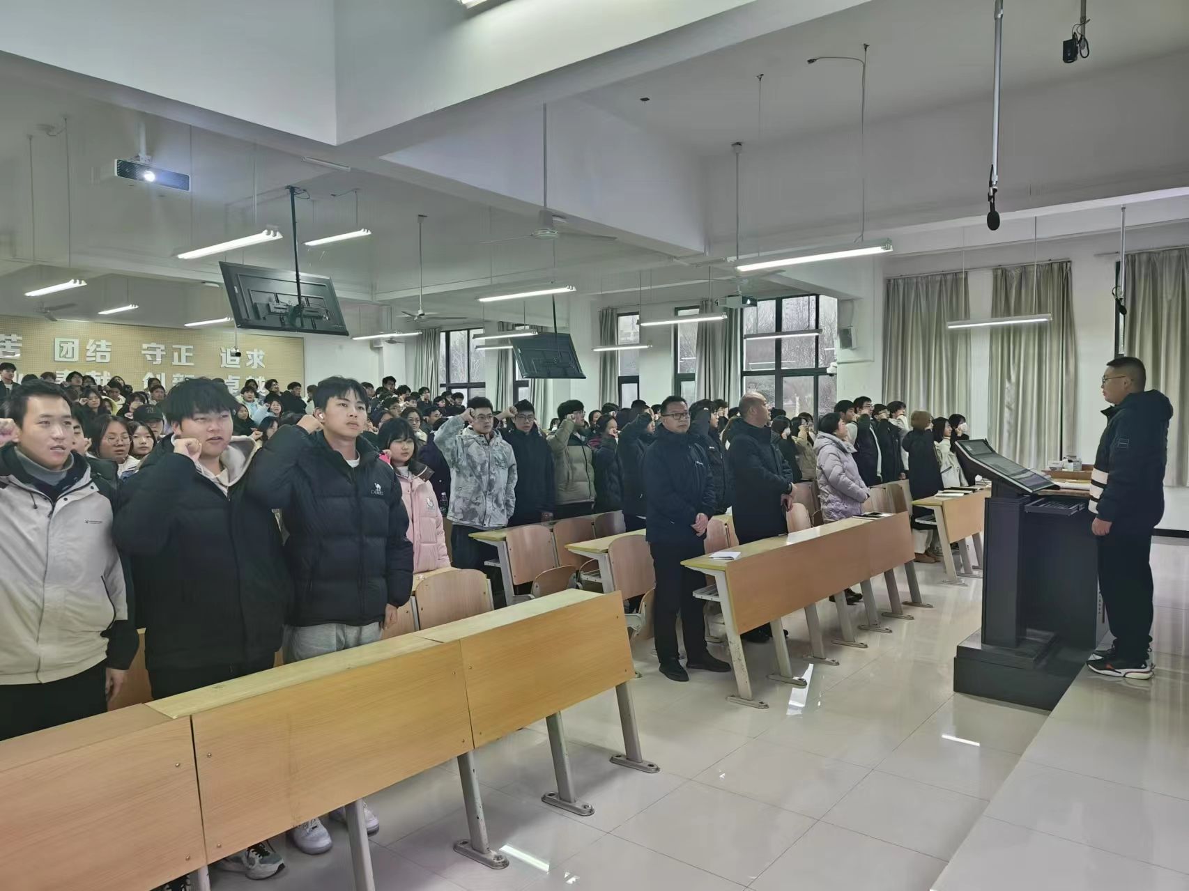 为进一步加强学风建设,严肃考试纪律,营造公平公正、诚实守信的考试氛围,1月3日,太阳成tyc122cc召开2024级员工诚信考试教育大会,党总支书记孙保本、副经理杨芳、学工办主任谭自力,辅导员祝志一及349名2024级员工参加,会议由祝志一主持。