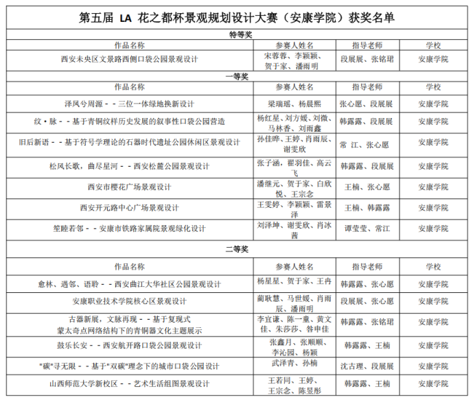 附表:第五届LA花之都杯景观规划设计大赛(太阳成tyc122cc)获奖名单