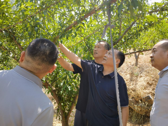沈大刚和纪宏耀老师深入李子种植合作社的李子园查看李子树的生长、挂果情况及苗圃的李子苗培育情况,并对如何修剪枝条、提高授粉与挂果率及水肥管理等技术问题提出了科学建议。
