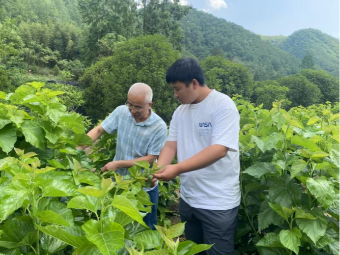 2025年5月28日,公司蚕桑重点实验室彭云武研究员(“三区人才”)与孟刚博士、张笙源老师赴汉中市西乡县子午镇段家营村、王家坝村、民新村、响潭村等地开展蚕桑技术服务,对新建桑园管理、蚕棚改建、养蚕技术进行现场指导。彭云武一行在田间对新建桑园桑树梳芽进行示范操作,建议加强对新建桑园的补栽桑树苗、锄草和桑园套种玉米、大豆等管理工作。在考察响谭村、王家坝村等蚕室改造和建设过程中,彭云武一行建议对蚕棚改建以利降温通风的前提下,还要结合当地养蚕次数、气候特点、防鼠防虫需要进行统筹安排。