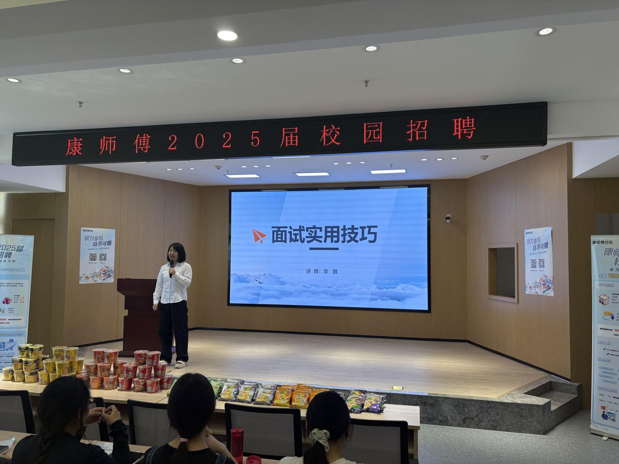 宣讲会上,西安顶益食品有限公司人力资源处李颜处长以自身丰富的人资经验和大公司用人的视角,结合理论模型和实践案例,从“企业招聘什么样的人?”、“面试是如何进行的?”、“如何成为面霸?”三个方面给员工讲授了一堂生动的《面试实用技巧》课程。课程深入浅出,内容丰富,实用性强,为员工面试提供了指南,增强了员工求职技巧和信心。