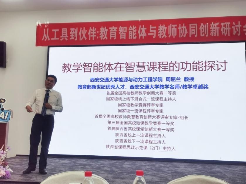 会上,西安交通大学周屈兰教授围绕“教学智能体在智慧课堂的功能探讨”议题,介绍了数智教学体系LPMOT架构及教学智能体在智慧课程中的核心作用;西北工业大学张莹教授围绕“新构型智能体引领AI教学新浪潮,重构‘师-生-机’三元融智课程新形态”议题,分享了数智化变革下的教学框架、知识图谱的教学应用案例等内容;智慧树服务工程师开展了“AI重构教学场景智慧课程创新设计实操工作坊”,和与会教师就不同教学场景下AI技术的应用潜力及师生需求进行了深入交流。