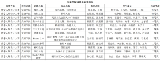 一等奖:《天水文脉,智水绿韵》(团队:数字山水匠)、《鹤栖绿境,数蕴人文》(团队:青植小分队)、《汉中市南郑区圣水广场景观改造设计》(团队:飞天大火腿)、《鹿原栖霞,颐乐漫境》(团队:栖麓造园)。