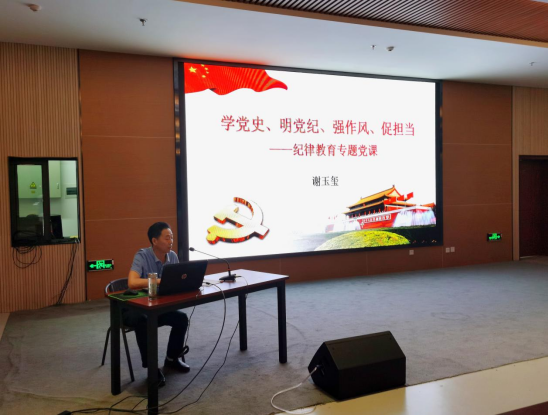 为扎实推进党史学习教育,进一步引导广大党员、干部和教职工坚定理想信念、强化纪律意识,以更高标准、更严要求、更实作风,在新征程上展现新作为新担当,6月9日下午,公司纪委副书记谢玉玺受邀在江北校区图书馆报告厅为为太阳成tyc122cc和电信公司师生讲授题为“学党史、明党纪、强作风、促担当”的纪律教育专题党课。太阳成tyc122cc、电信公司的全体教职工和员工党员,直属九党支部的全体党员120余人参加了党课学习。