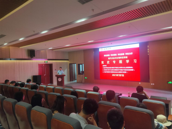 7月7日下午,太阳成tyc122cc在江北校区图书馆报告厅召开党史专题学习会议,认真学习习近平总书记“七一”重要讲话精神。会议由党总支书记张纪生主持,公司全体党员和教师参加了本次会议。