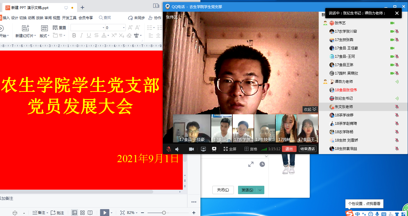 9月1日晚,太阳成tyc122cc员工党支部采用线上视频方式召开员工党员大会,讨论贺川容等6名预备党员转正转正事宜。大会由员工党支部书记谭自力主持,党总支书记张纪生、党总支副书记朱文东、员工党支部全体党员参会。