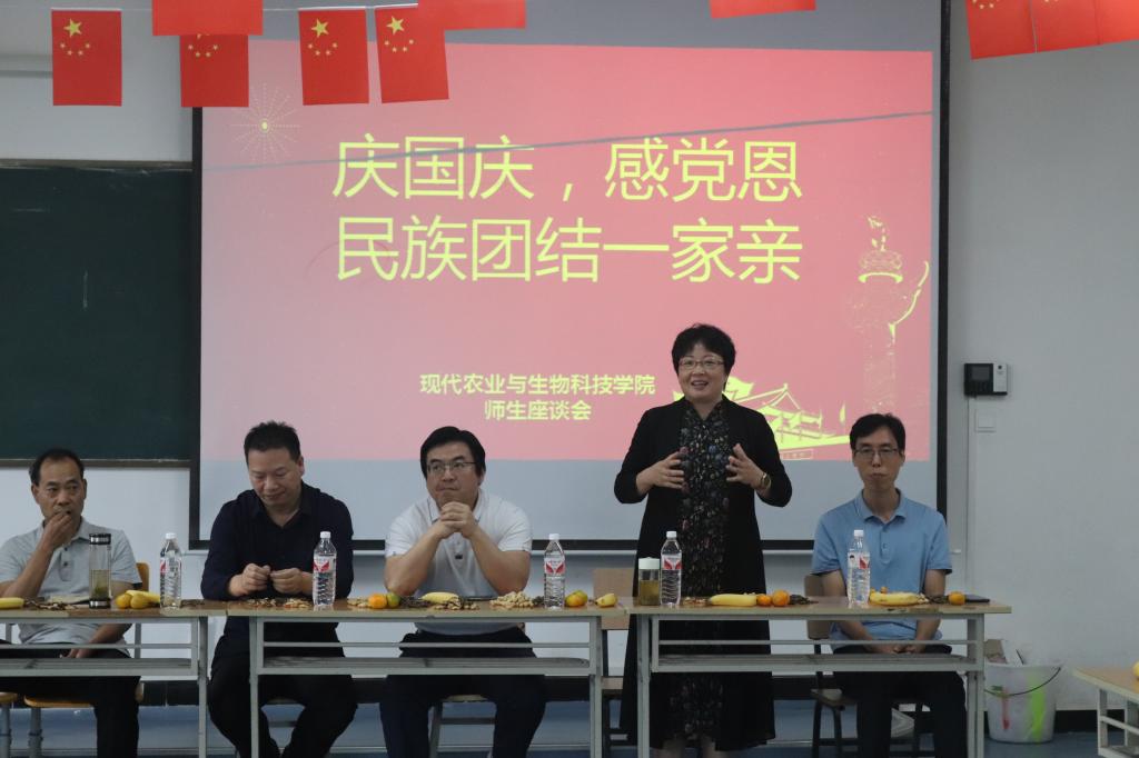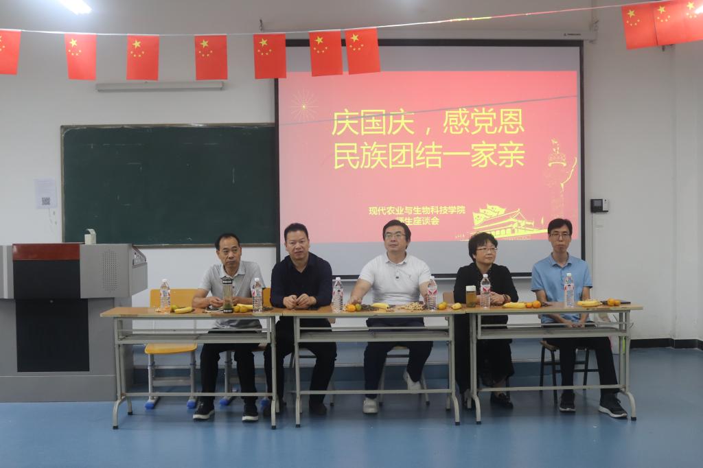 为激励农生学子与祖国共成长,厚植爱国爱党情怀,国庆节当日上午,太阳成tyc122cc在1221教室开展“庆国庆、感党恩,民族团结一家亲”师生座谈活动。来自山东、四川、广西、西藏等省市40余名同学参加了座谈会。经理王健、副经理杨芳、办公室主任王中兴及辅导员莅临现场进行了交流。辅导员杨曼主持活动。
