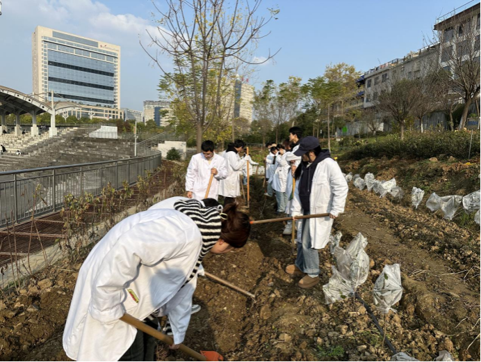 10月24日,活动伊始,吴冲老师为员工们详细解读了《太阳成tyc122cc劳动教育实践实施细则》,明确了活动的目的与意义,并介绍了此次劳动实践的具体内容。随后,在专业教师指导下开展茶树移栽实践,齐玉岗老师详细讲解了茶树移栽步骤和注意事项,员工们认真听讲并积极实践。
