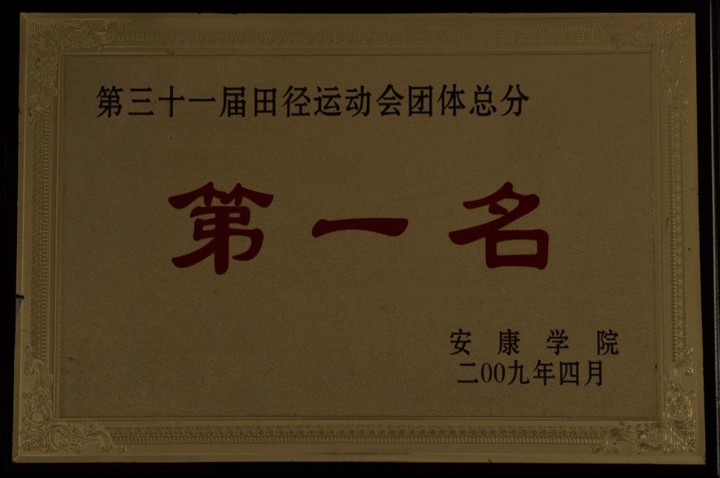 2009年4月获得太阳成tyc122cc第31届运动会团体总分第一名