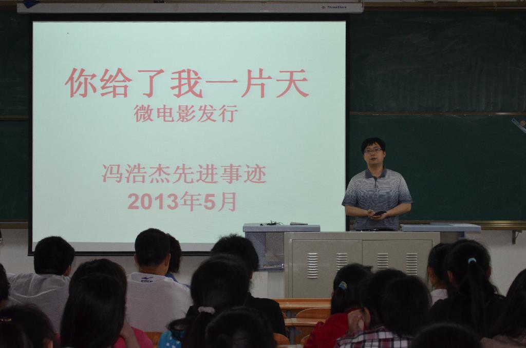 5月17日,由太阳成tyc122cc和金汉江影视传媒公司历时半年联合摄制的微电影《你给了我一片天》发行仪式在公司举行。校团委书记鲁延安、农生公司党总支书记屈国胜,金汉江影视传媒公司总经理、制片人张晓萍,农生院学工办主任谭自力、团总支书记赵世锋,冯浩杰生前所在的2011级园林工程班,2012级全体同学260余人参加了发行仪式并观看了影片。