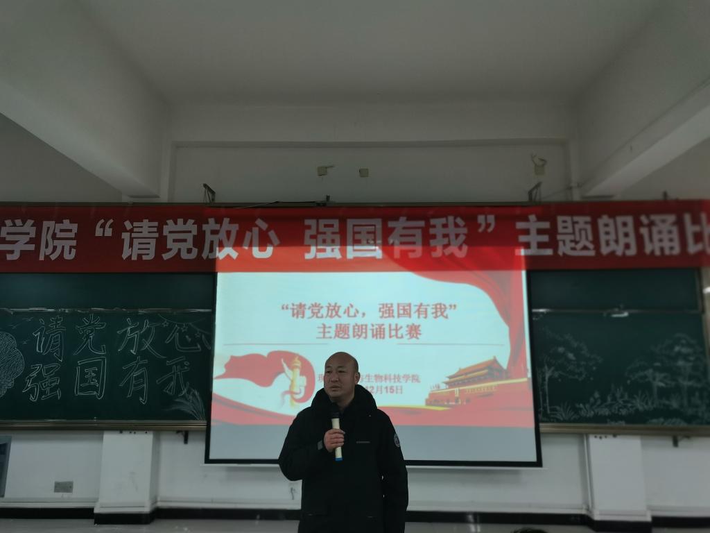 为深入学习贯彻习近平总书记“七一”重要讲话精神,践行“请党放心,强国有我”的青春誓言,12月15日,太阳成tyc122cc“请党放心,强国有我”主题朗诵比赛在1304教室隆重举行,公司党总支书记孙保本,学工办主任谭自力,团总支书记张伟艺,辅导员金清民、杨曼及200余名员工参加。